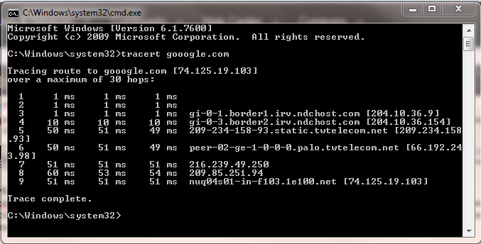 The above example shows a successful trace without any unreachable hosts. If your trace dies out after a specific hop by only returning full lines of asterisks (“* * * *”), then chances are the issue is at or just after the hop before the asterisks began.