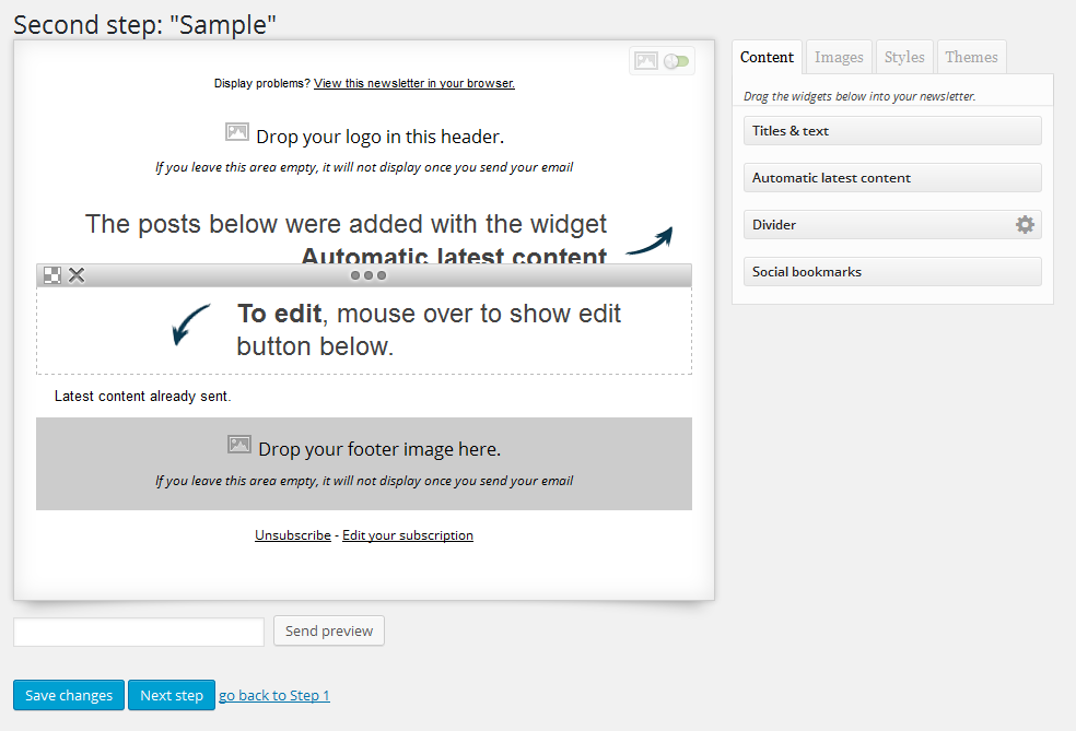Select the logo, titles, styles and other content that you want for your Newsletter and then hit next page.